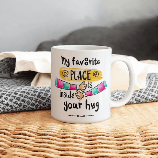 My Favorite Place is Inside your Hug - White Ceramic Mug