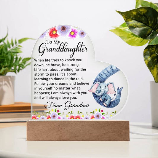 To My Granddaughter | Be Brave Be Strong | Best Gift From Grandma | Acrylic Heart Plaque