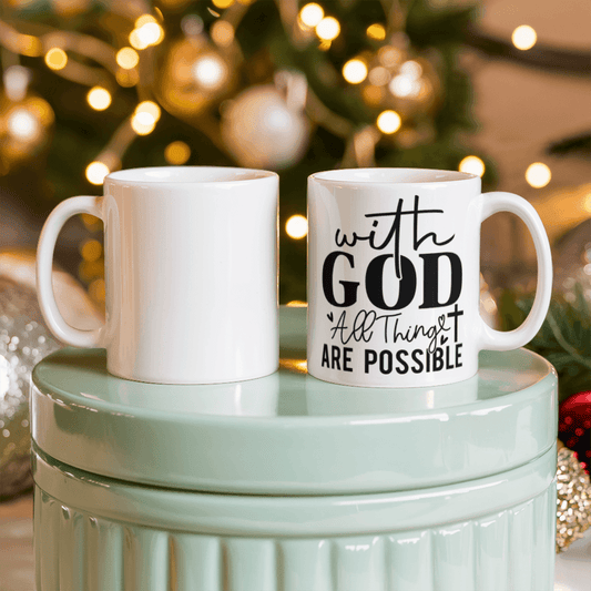 Inspirational - With God All Things - White Ceramic Mug