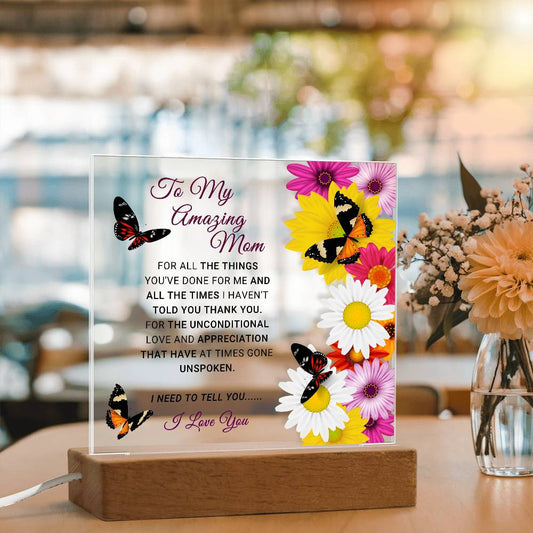 To My Amazing Mom - Unconditional Love - Acrylic Square Plaque